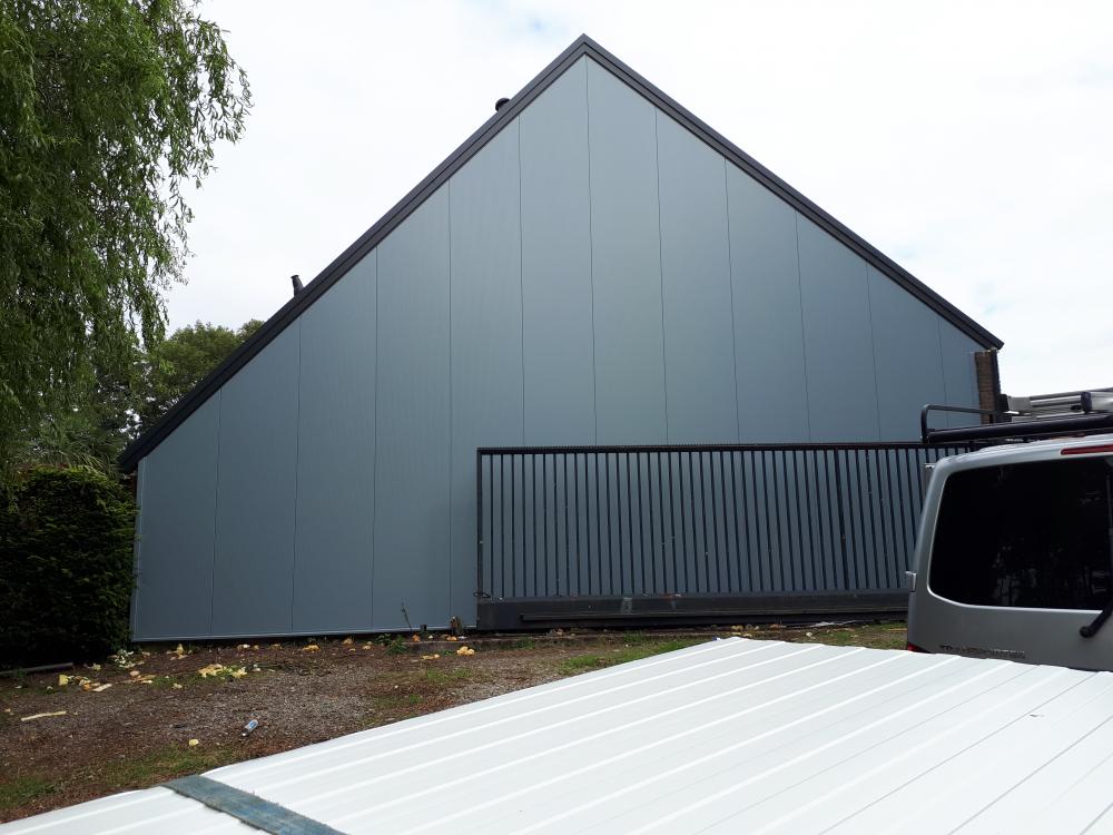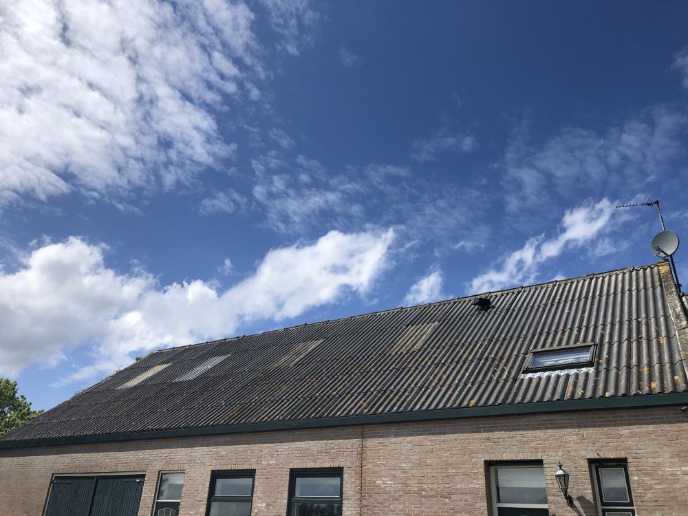 BeschrijvingHier zijn de oude asbestplaten verwijderd, en de nieuwe sandwichpanelen gemonteerd. inclusief het vervangen van 4 dakramen.