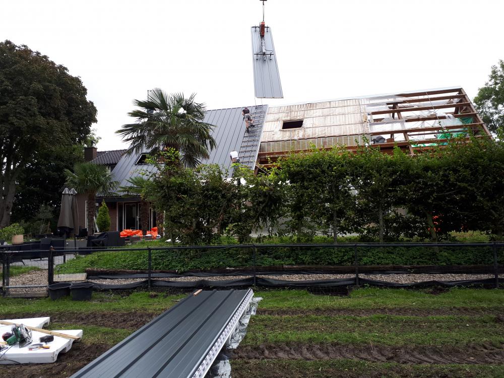 Ca 420 m2 dak, 45 meter Naadloze dakgoot, en 85 m2 gevel beplating. hier heeft de isoaltie de juiste waarde voor de subsidie!!