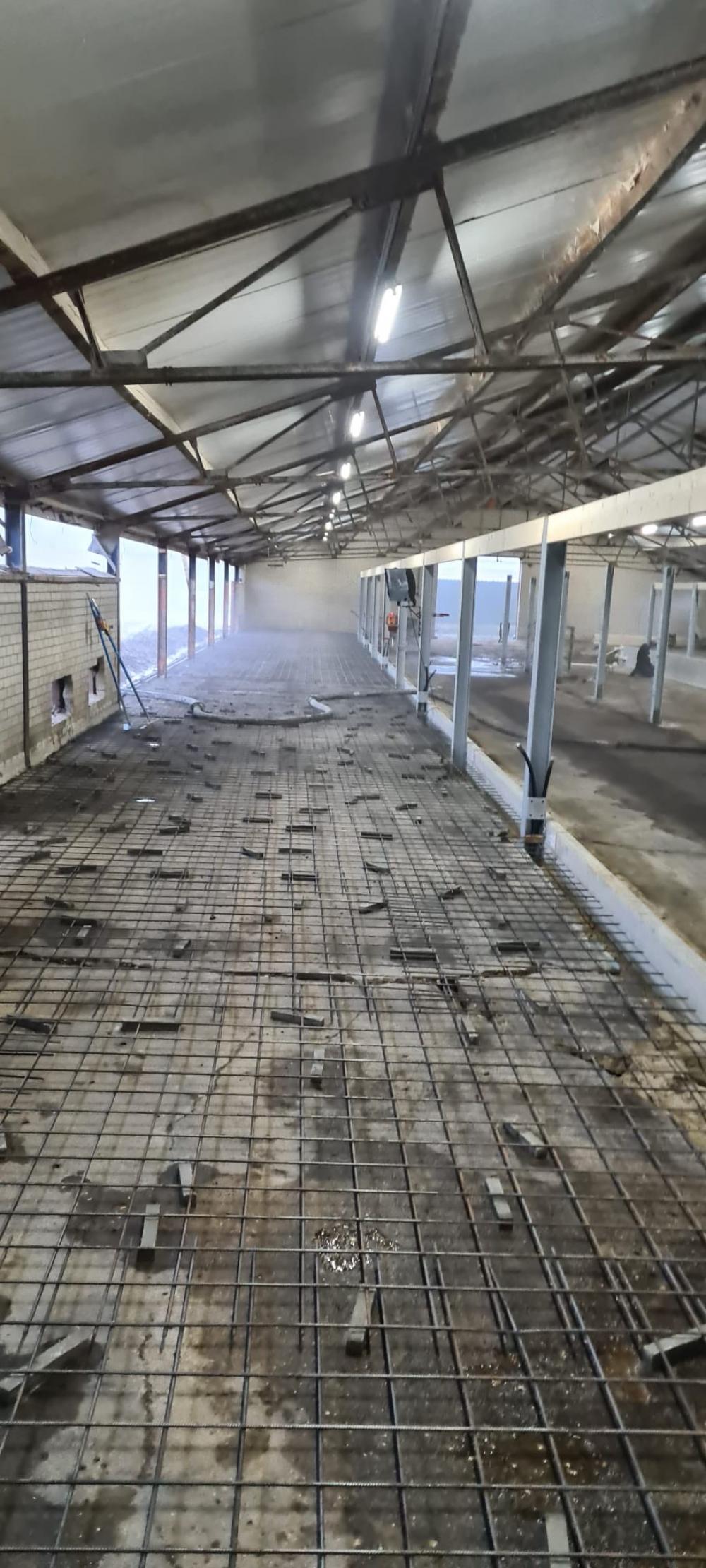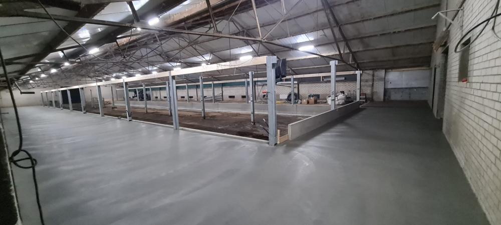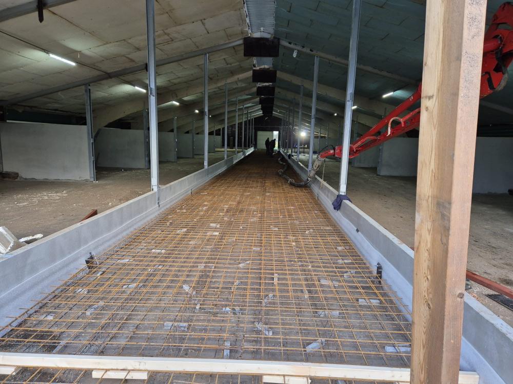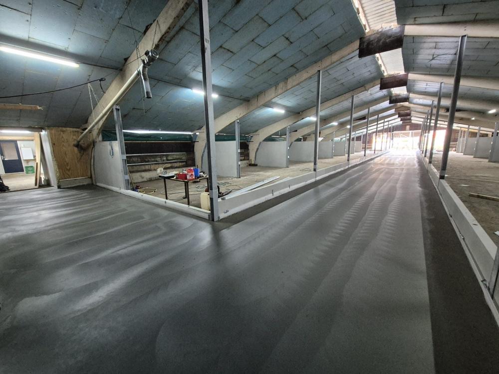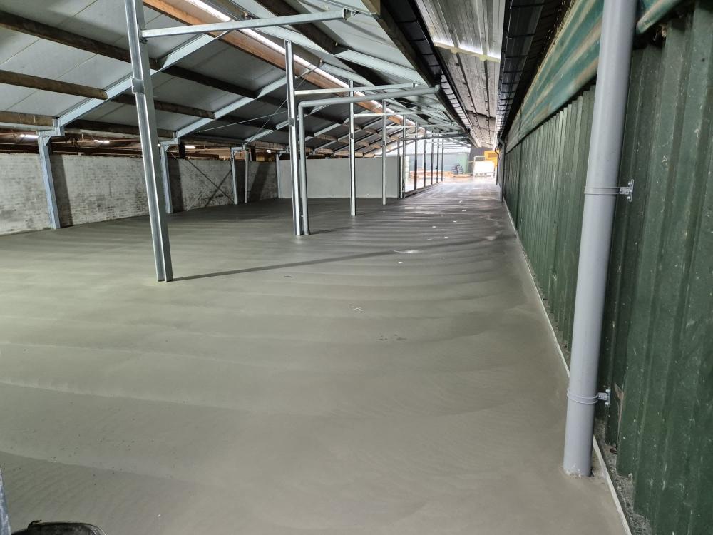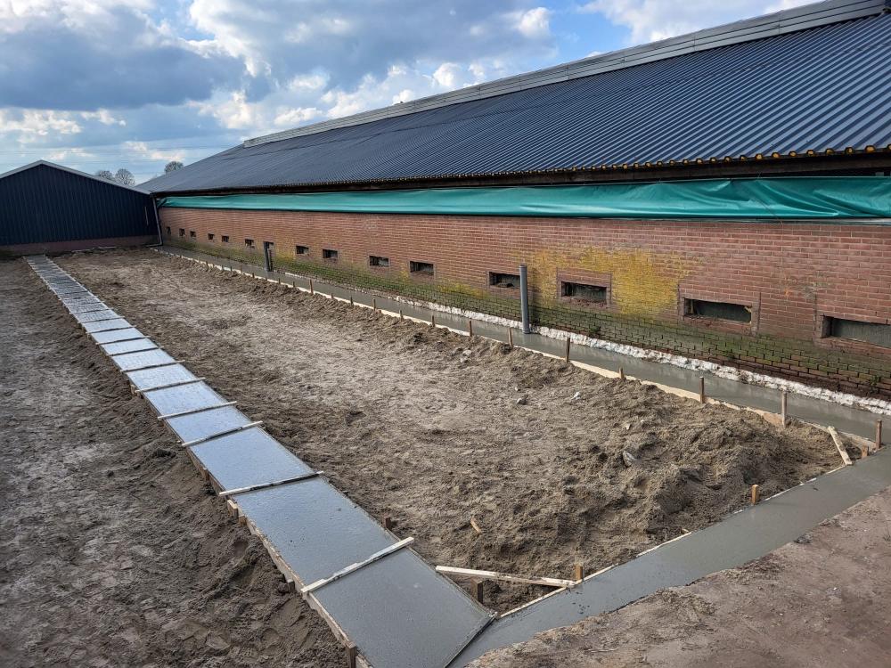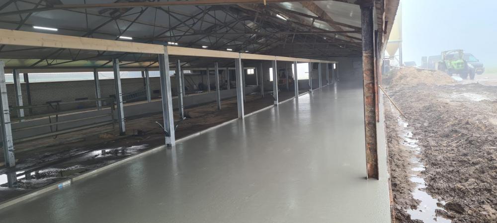 Op dit agrarische bedrijf ca 750 m2 betonvloer gestort en afgewerkt.