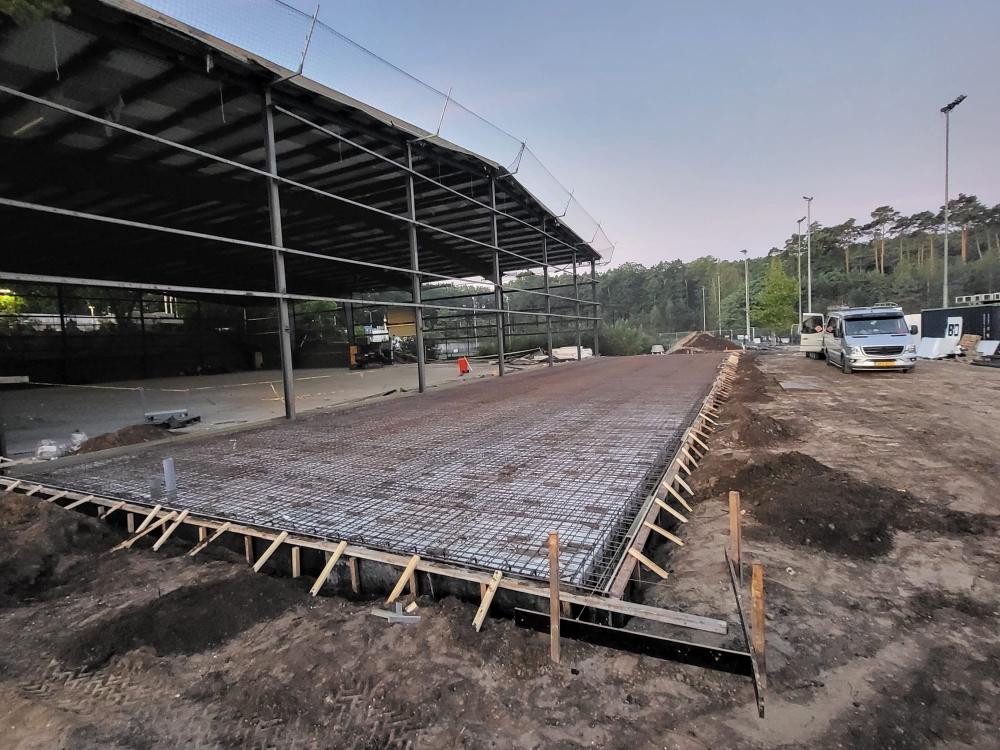 Op dit sportcomplex in Zeist hebben we voor de uitbreiding van deze Padel hal het betonwerk verzorgd. Binnen de poeren en funderingen voor de Padel banen, en buiten de fundering met de gevlinderde betonvloer.